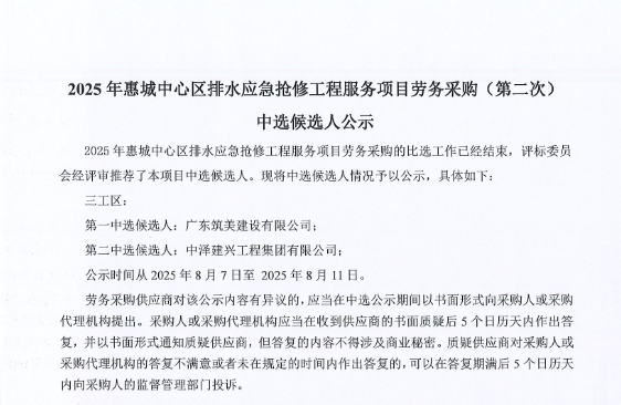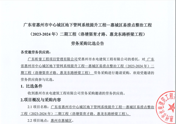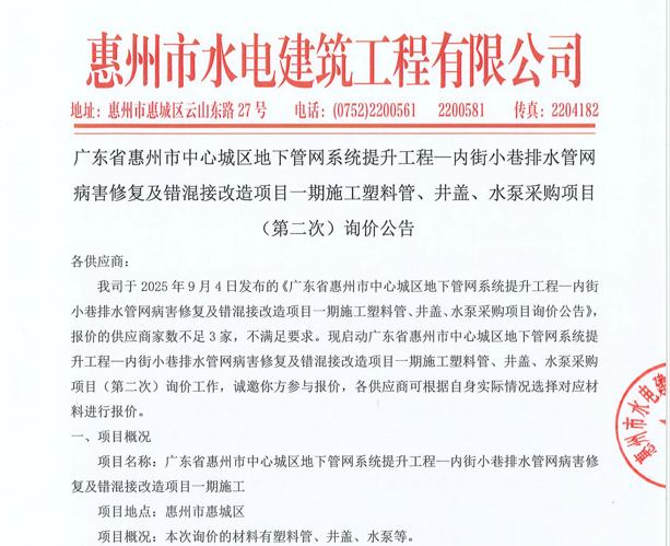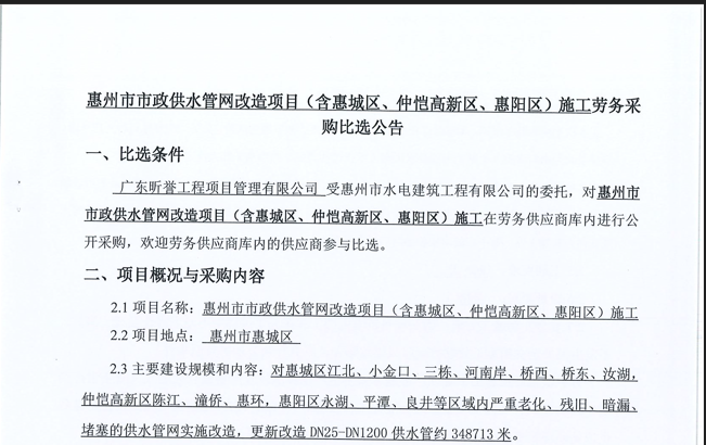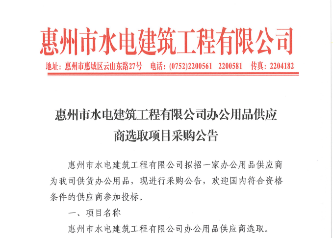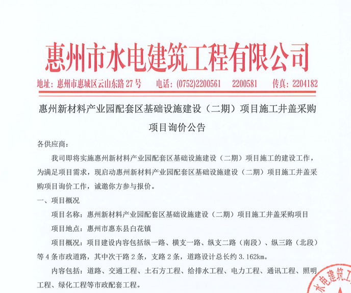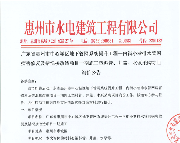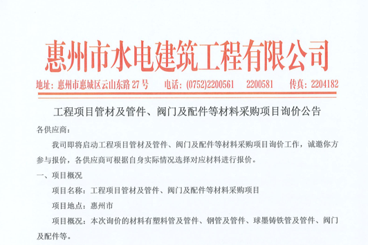 惠州市水電建筑工程有限公司成立于一九六四年四月,隸屬惠州市水務集團有限公司,是一家國有綜合性施工企業,主營水利水電工程、房屋建筑、市政工程等施工業務。公司擁有水利水電工程施工總承包一級、建筑工程施工總承包一級、市政公用工程施工總承包一級、公路工程施工總承包三級,公路路基、路面及建筑裝修裝飾專業承包二級,環(huán)保工程、機電安裝、河湖整治、輸變電工程專業承包三級等經營資質……